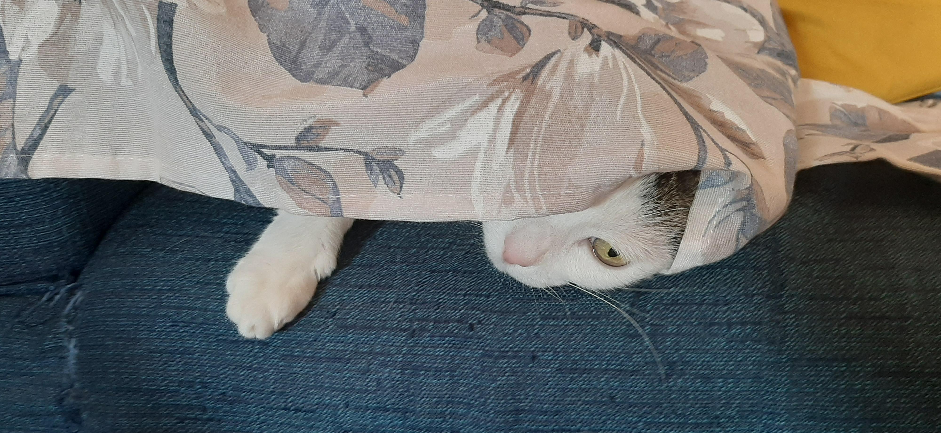 Betty (Maine, USA) was on the hunt for adventure, and decided the best place to find it was behind the couch cushions. Couch chaos is the best.