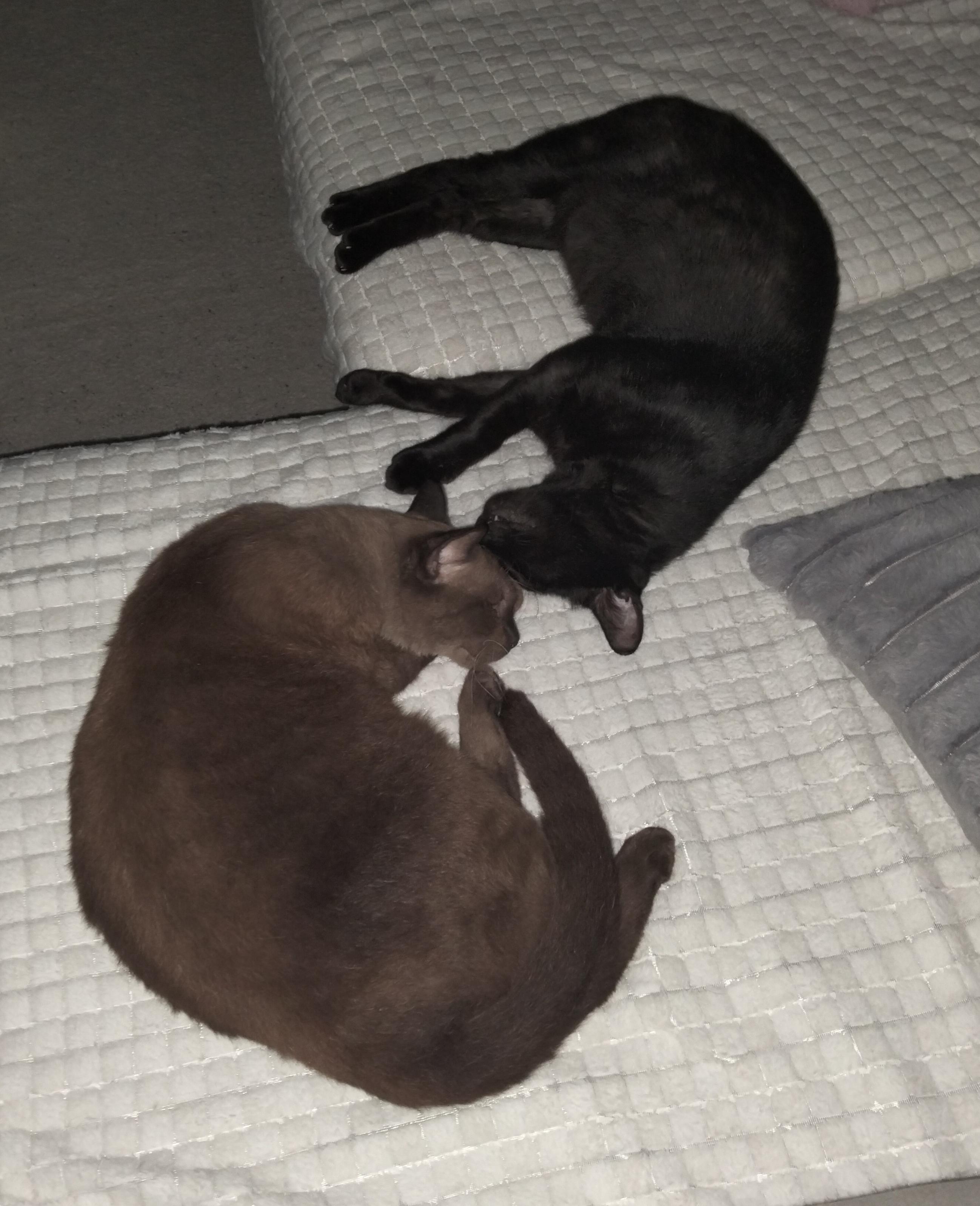 Batman and Brownie love each other so much 💕❤💕 They always sleep all over each other and love kissing each others heads
