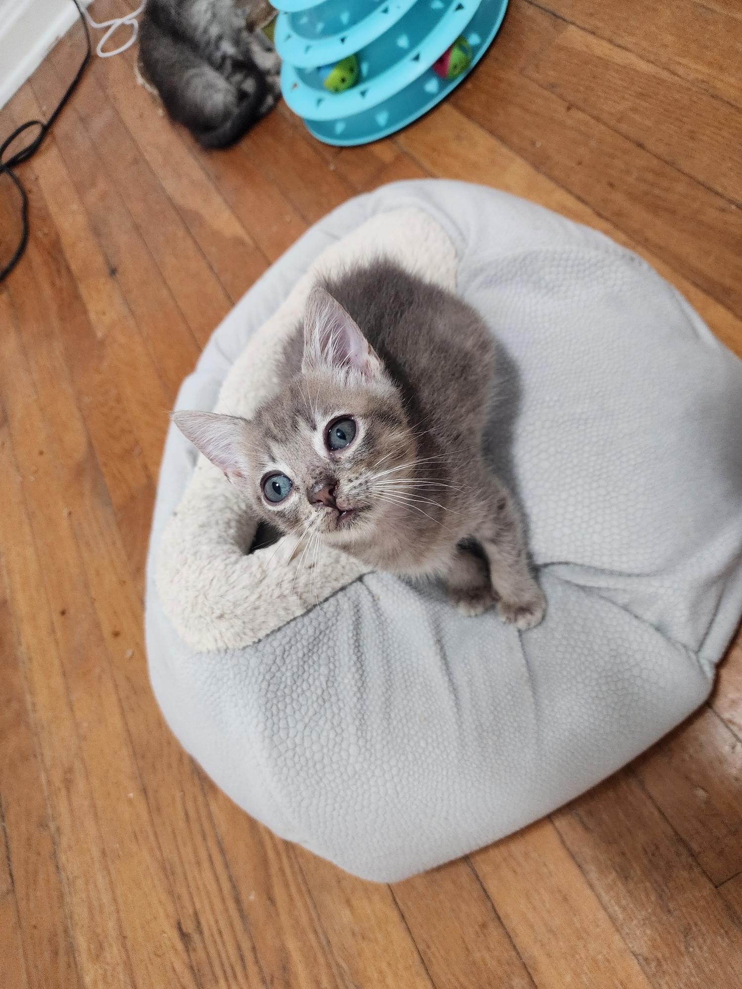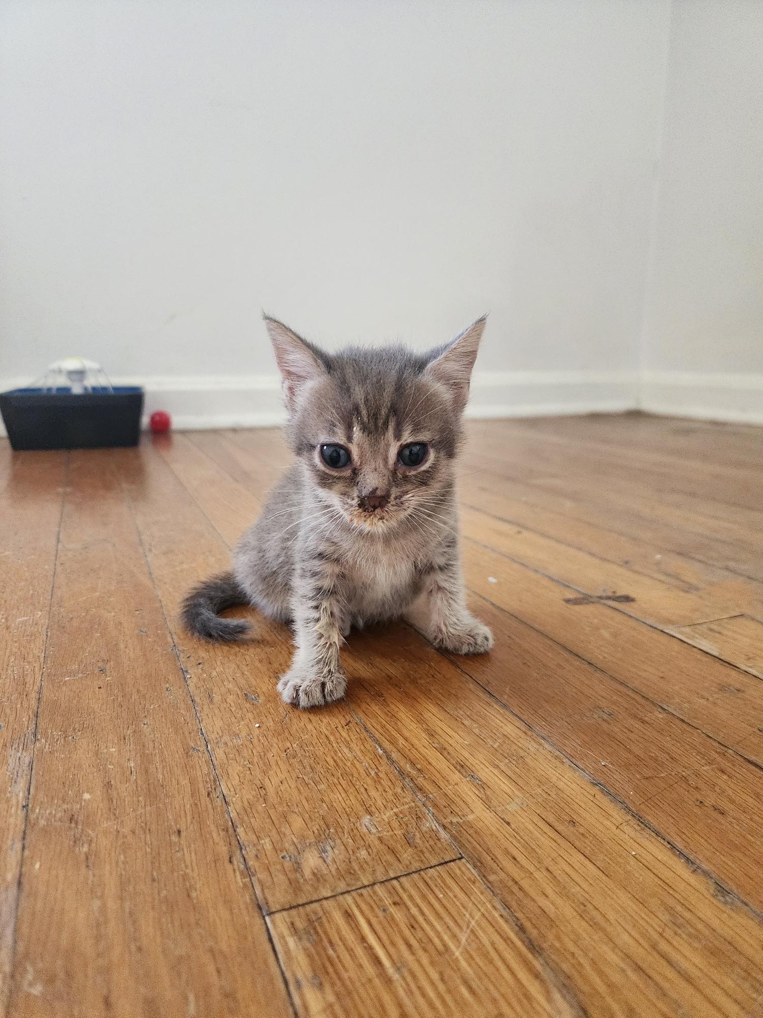 No fleas, no ringworm, not starving. It appears someone dumped the little one at the local park over the last day or two.