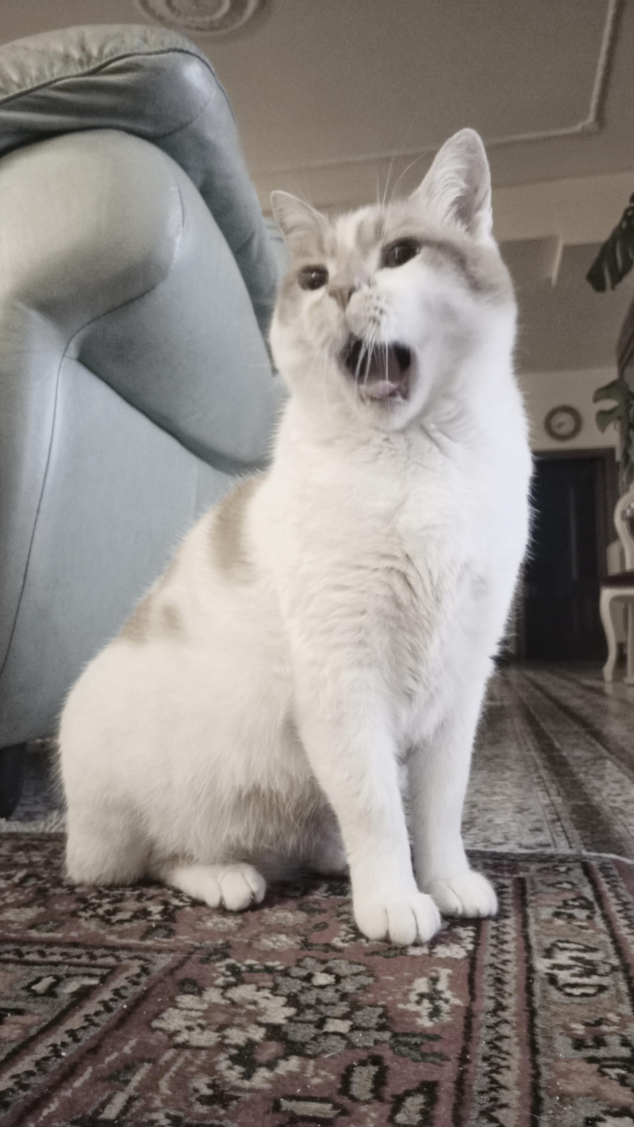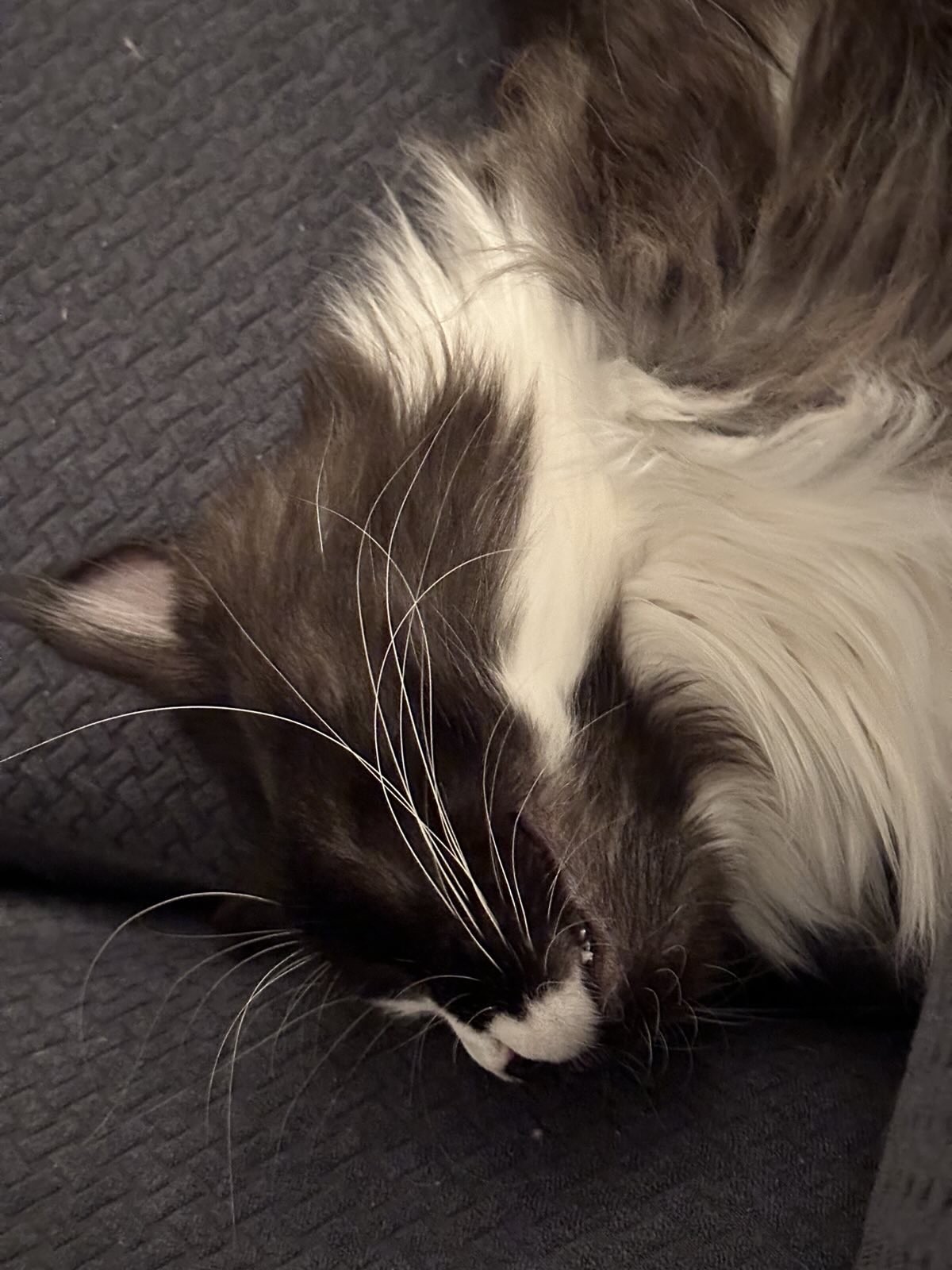 Sleepy boy Magnus (plus bonus tiny toof!) #catsofmastodon #caturday
